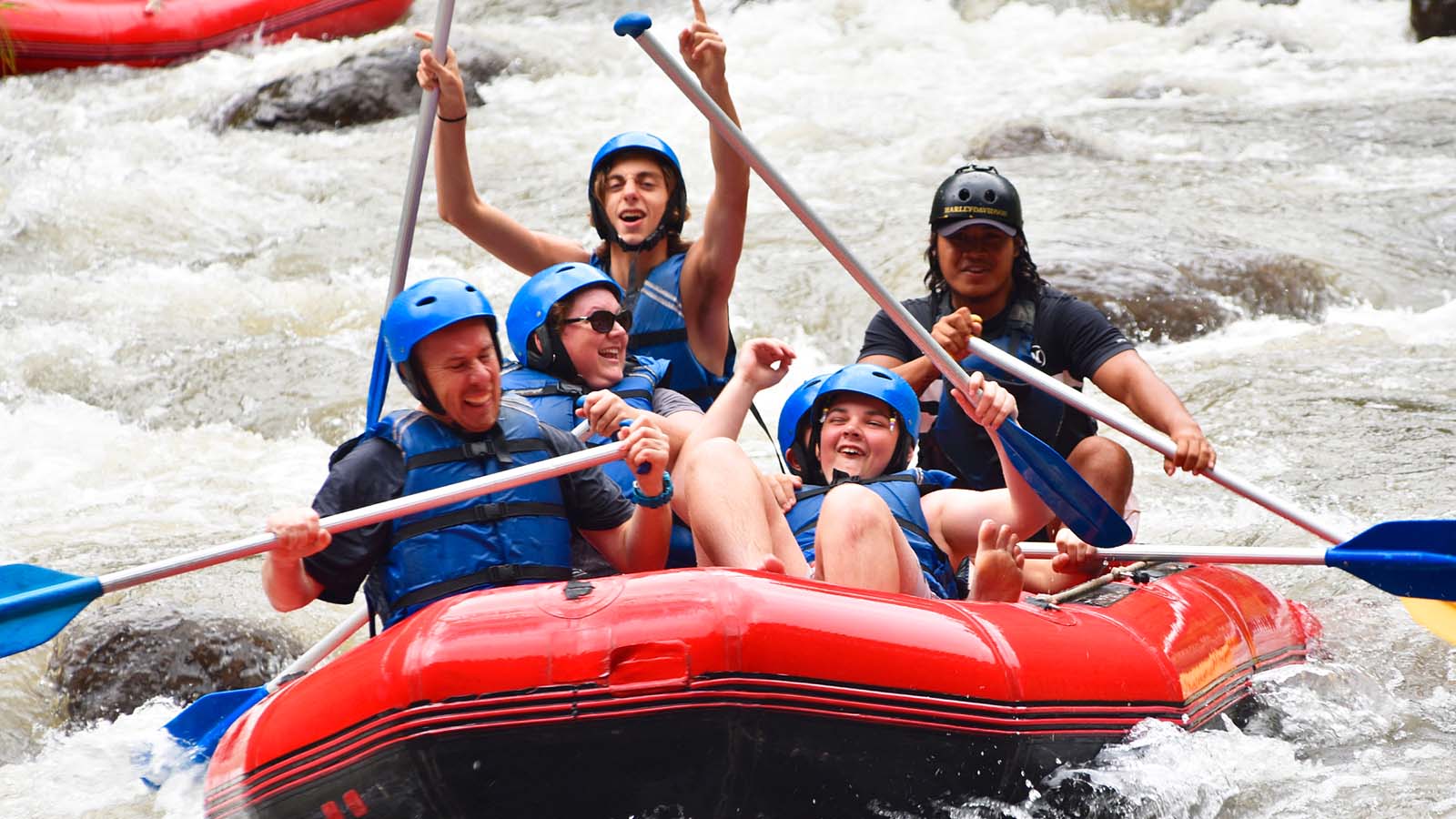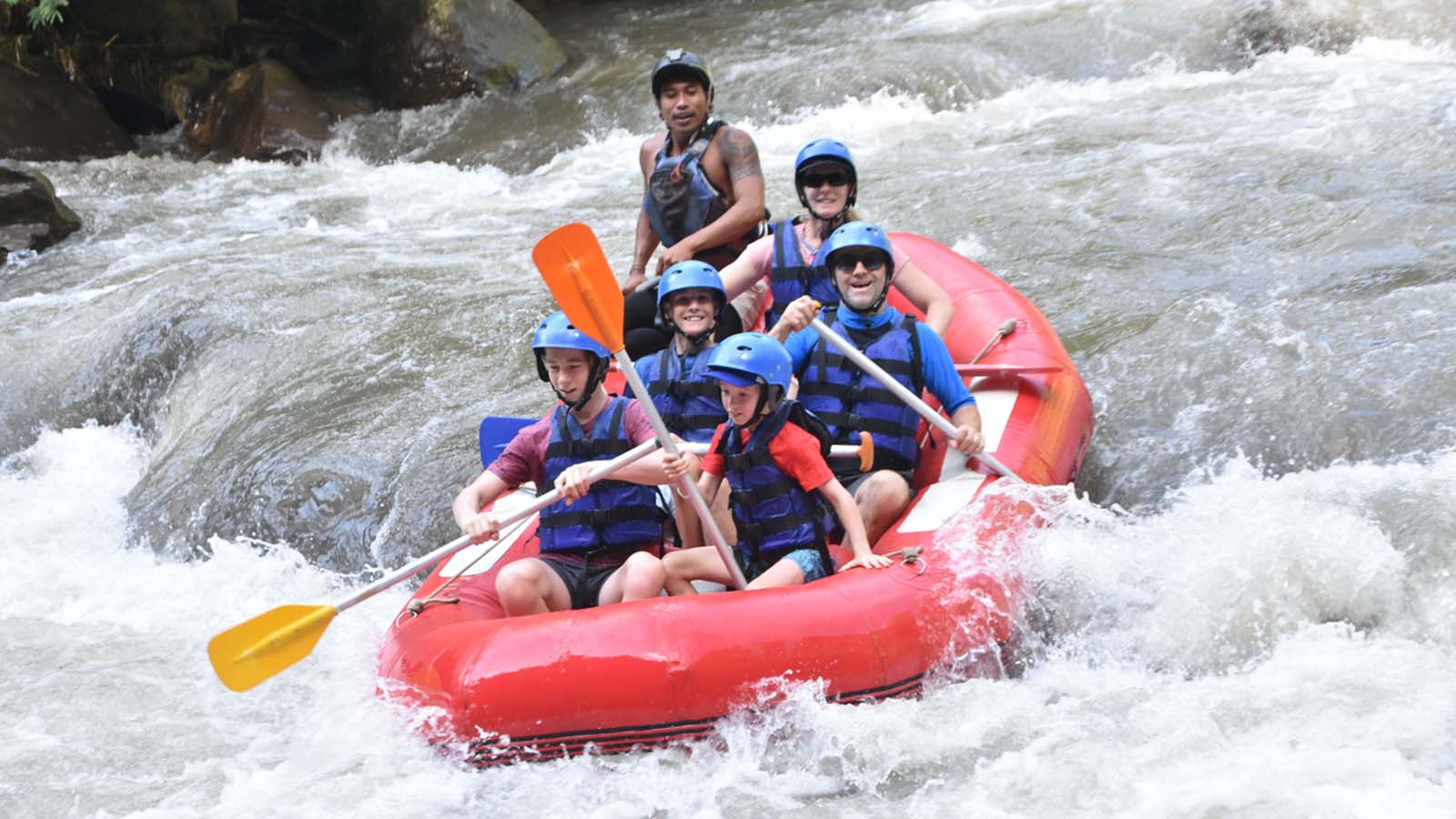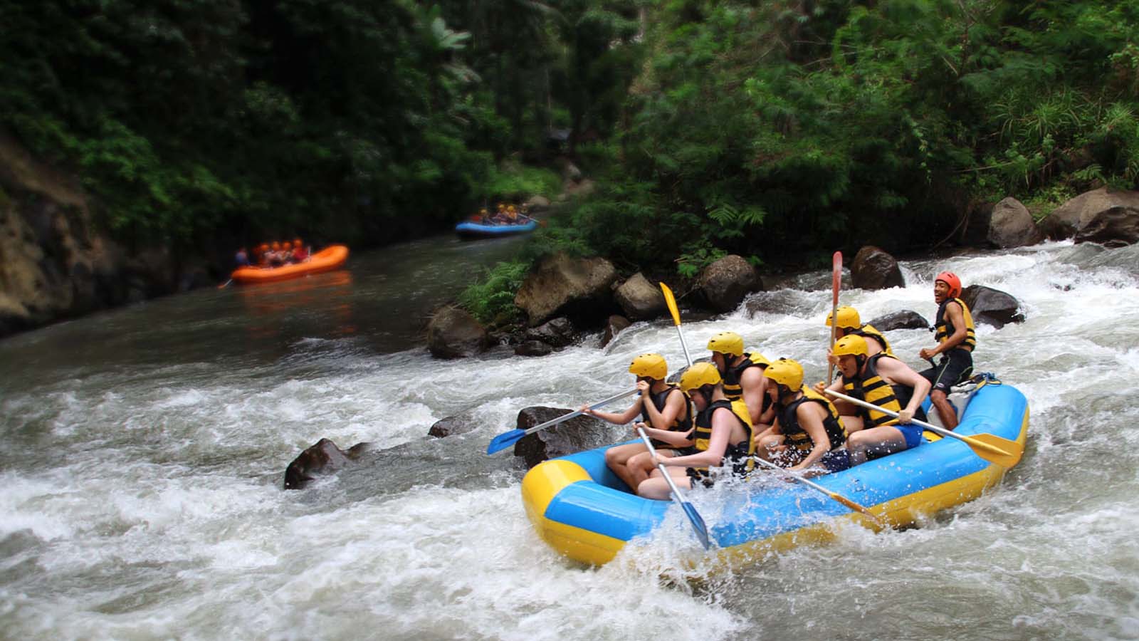 Enjoy the exciting experience of white water rafting on the Ayung River, surrounded by the natural beauty of Ubud. Rafting on this river is suitable for beginners and adventure enthusiasts, with challenging but safe rapids. Feel the sensation of paddling between beautiful cliffs, small waterfalls, and Balinese art carvings on the river's rock walls. Complete your trip with the calming green scenery and natural atmosphere of Ubud.